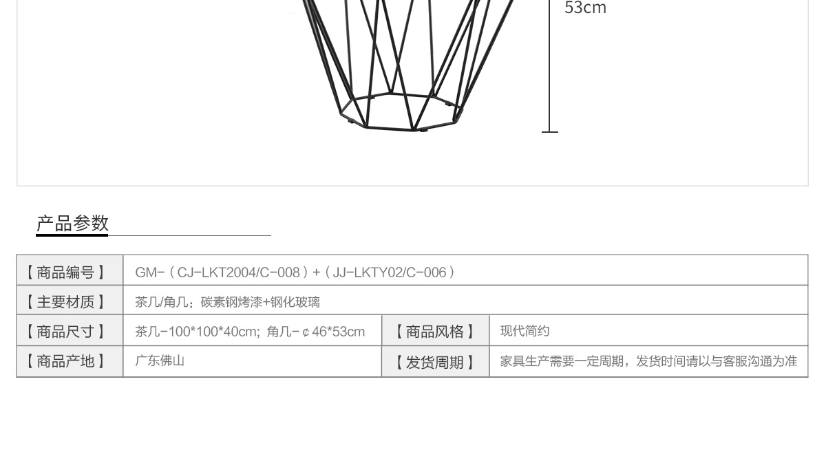 創意時尚鐵藝烤漆玻璃茶幾LKT2004/C-008