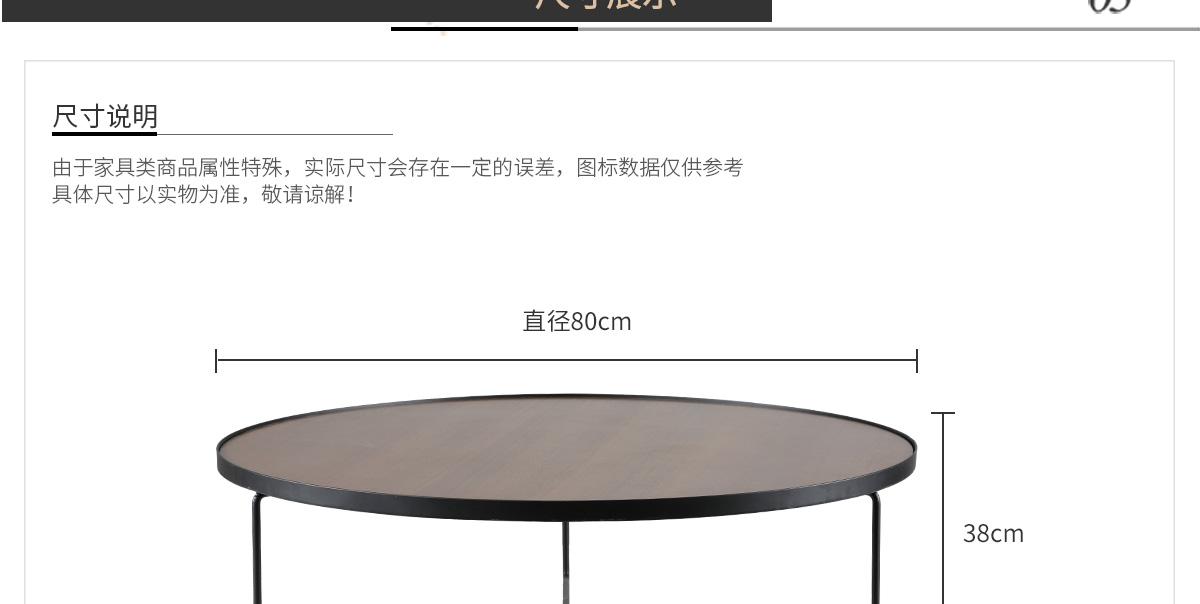 名稱:實木鐵藝創意北歐簡約圓形茶幾118