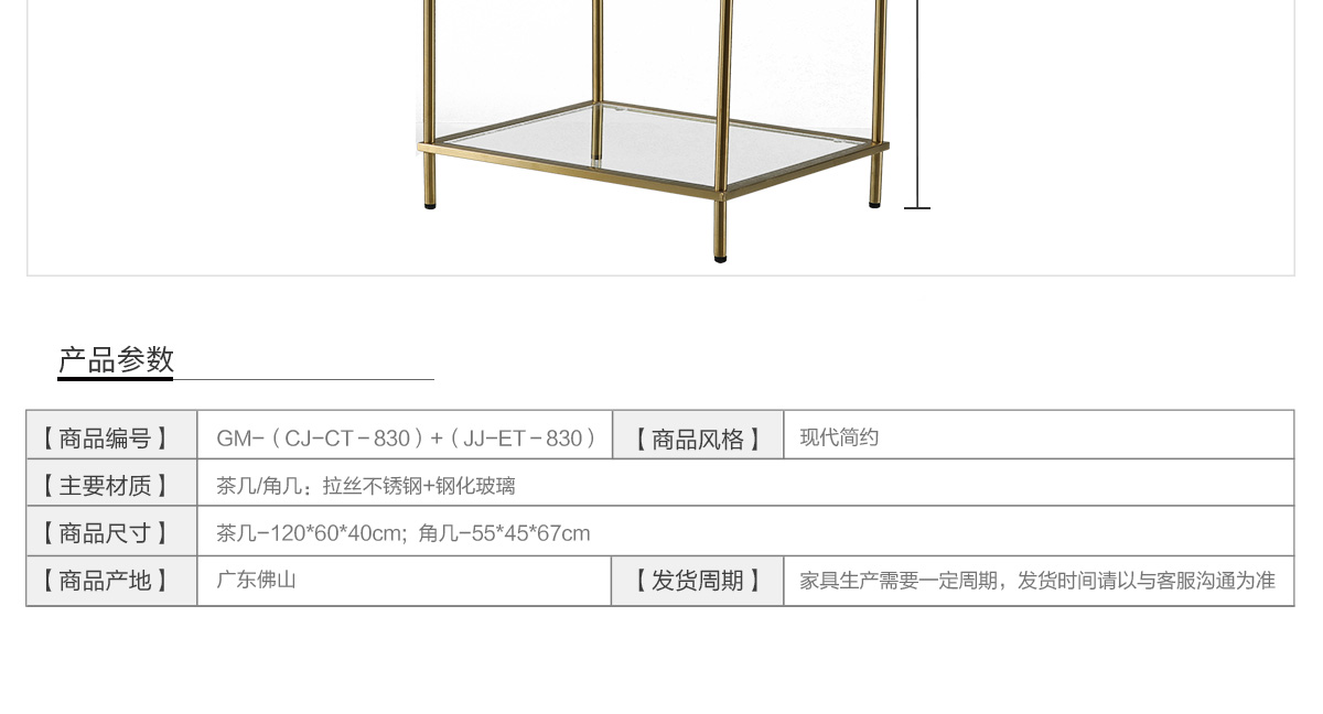 名稱:簡約現代金色玻璃茶幾CT-830