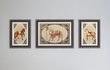 新中式掛畫立體浮雕三聯(lián)壁畫-金碧輝煌
