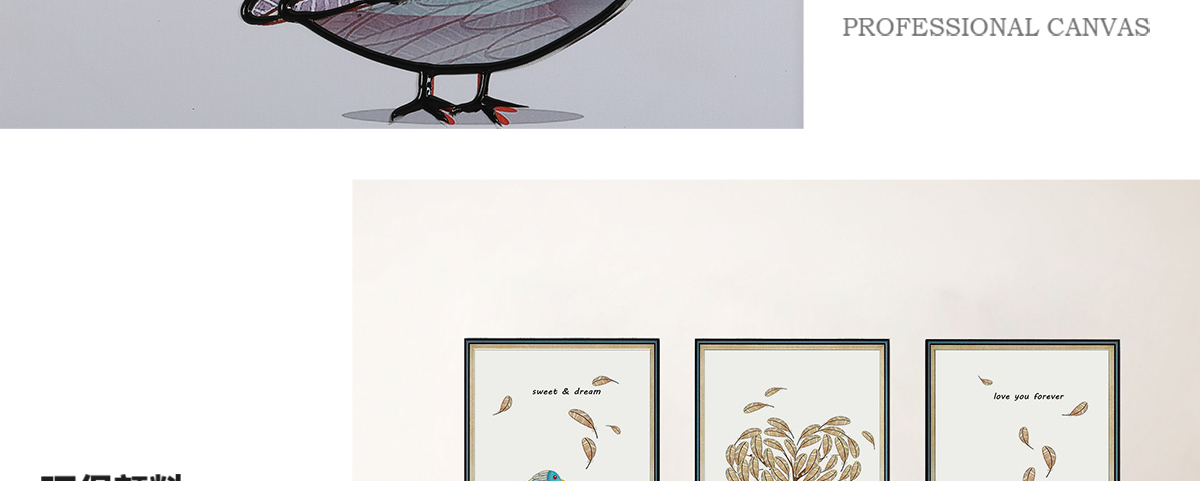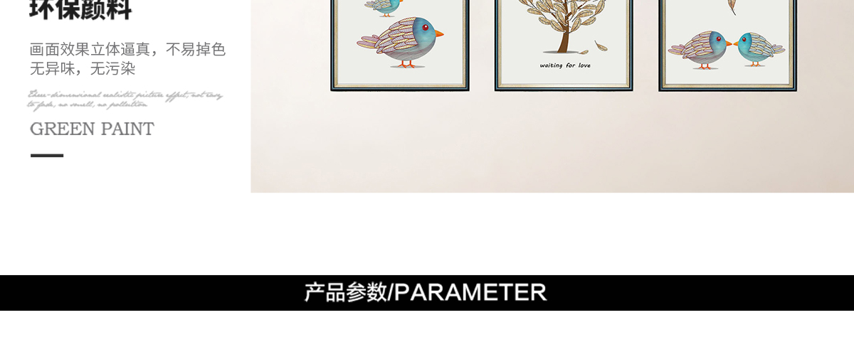 名稱:新中式沙發背景墻三聯掛畫-愛情鳥