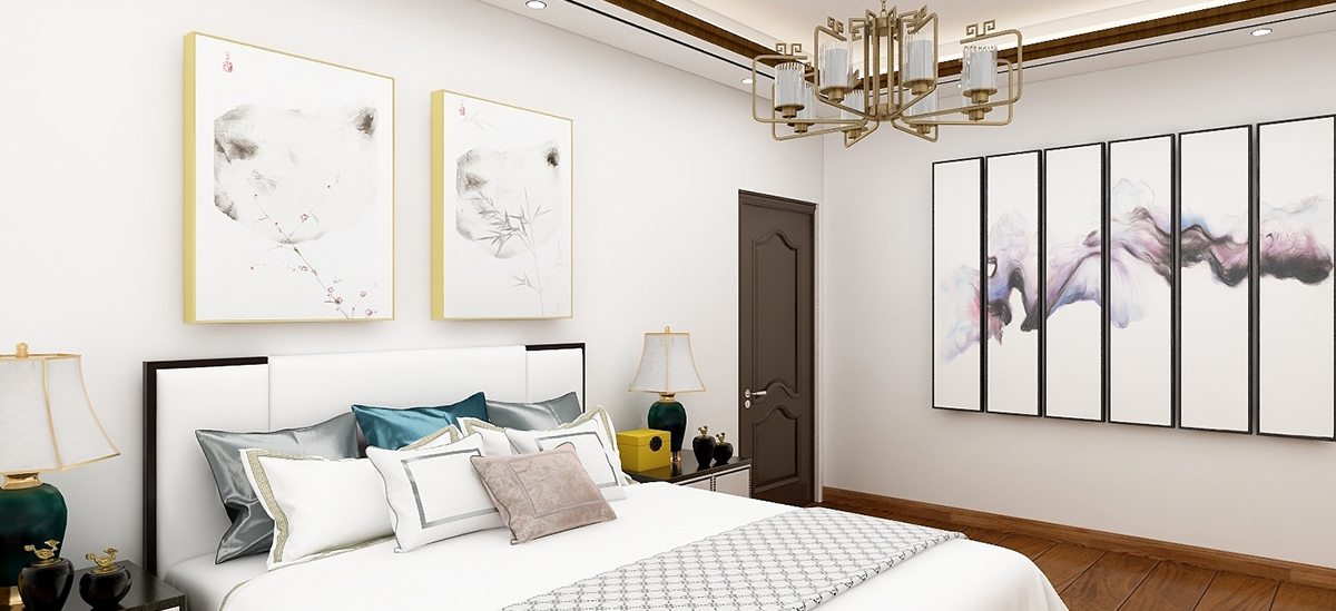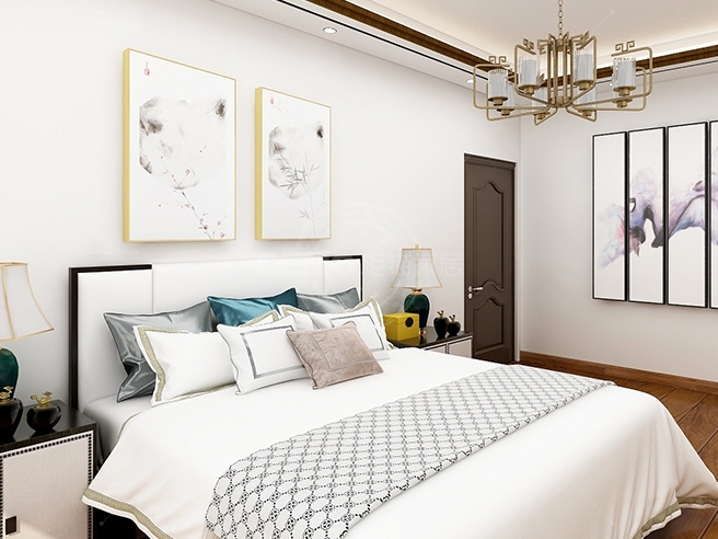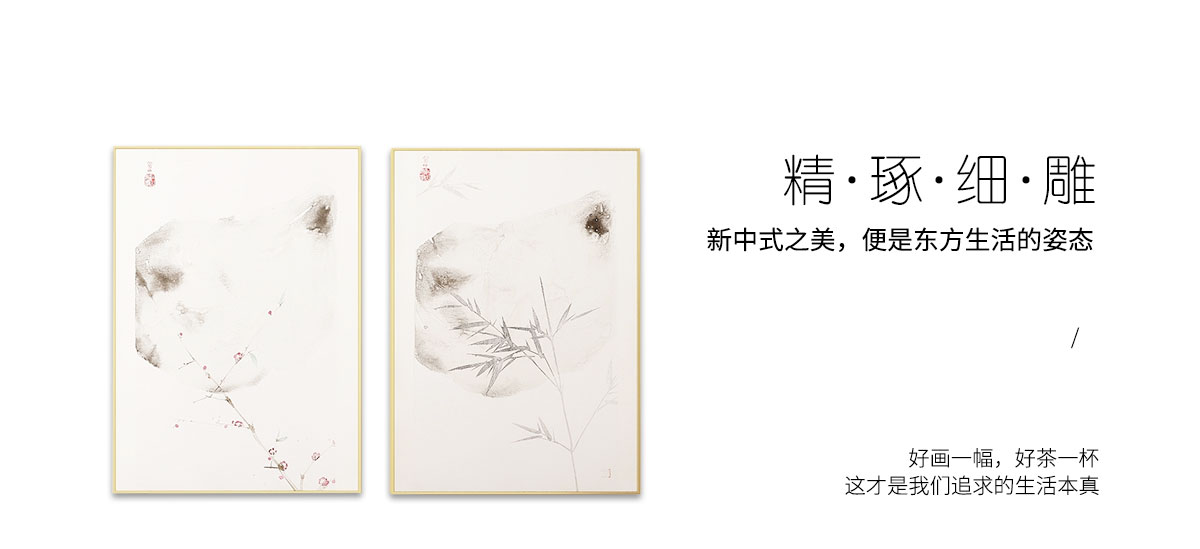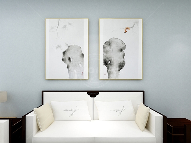 新中式臥室床頭裝飾畫雙聯清新壁畫-云煙