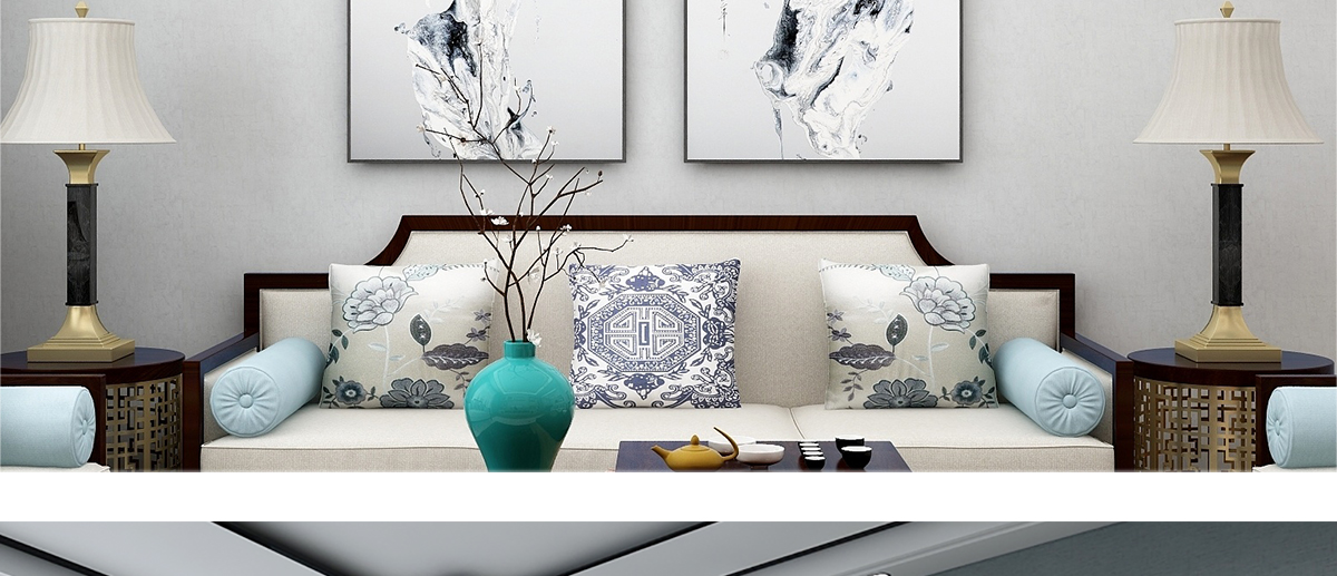 新中式臥室床頭裝飾畫雙聯清新壁畫-云煙