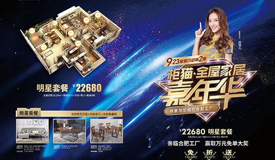 9月23日,柜貓·全屋家居嘉年華,明星與您相約合肥工廠,為您帶來22680超值明星套餐,花最少的錢,裝點最好的家!