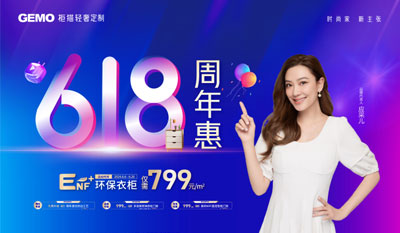 618周年惠超值大促活動來襲,活動時間與6月6日到6月26日,僅需799元/m2即可享受ENF?環保衣柜定制活動,讓更多的業主輕松住家,健康生活。