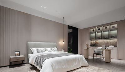 柜貓輕奢定制—朗月系列·臥室,摒棄繁復元素的堆砌,回歸點線面的自然組合,將精致奢感納入空間。
