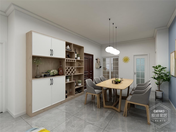 入戶:工作一天后,心里總有一個(gè)溫暖的歸處,那便是家。為了充分利用空間,在進(jìn)門的右手邊,設(shè)計(jì)師依墻打造了一款餐邊柜,儲(chǔ)酒、儲(chǔ)物,安放生活的繁雜,簡(jiǎn)約而不簡(jiǎn)單的餐桌餐椅,記錄了美味在舌尖的舞動(dòng)。因?yàn)橛屑遥睿瑥膩矶疾粫?huì)缺少溫暖。