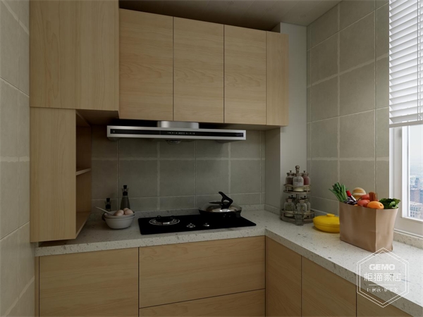 廚房:這一戶型的廚房空間不是很大,設(shè)計(jì)師根據(jù)實(shí)際,將L型植入廚房,洗、切、烹調(diào)依次進(jìn)行,生活的安心在此被打開,地柜與吊柜的組合,將空間藝術(shù)展現(xiàn)的淋漓盡致。暖色調(diào)的柜體搭配白色臺(tái)面,總能讓烹調(diào)者的心情更美好。