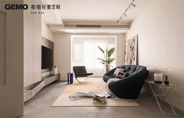 定制衣柜就做嵌入式,色彩搭配就用與裝修空間和諧統一的淺色系,電視柜做成懸空設計,搭配燈帶,會使整個柜體會顯得更加有質感。嵌入式的電器設計,也能讓原本狹窄的空間變得更加的寬闊,做到了整體統一,還不會顯得凌亂。