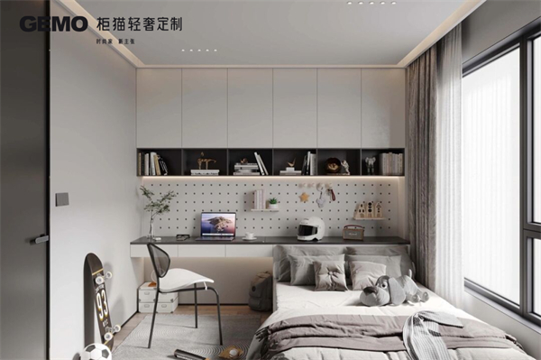 對于小臥室而言,墻面空間是非常寶貴的,我們可以利用墻面來安裝一些儲物柜、衣架、書架等等,這樣可以將地面空間最大化,讓臥室顯得更加寬敞。