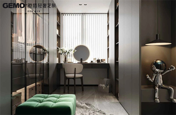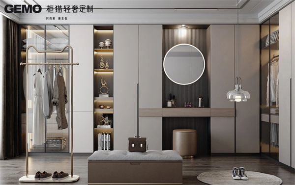 良好的照明設(shè)計(jì)可以讓衣帽間看起來更加寬敞明亮。可以考慮安裝可調(diào)光的LED燈具,以適應(yīng)不同的使用場景。此外,全身鏡或鏡面滑門不僅具有實(shí)用功能,還能增加空間感,讓衣帽間顯得更大。